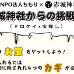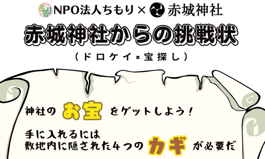 鎮守の森教室がある赤城神社さんとのコラボ企画! 「逃走中」のようにハンターから逃げながら、「カギ」を探してお宝を手にいれるゲームをします。 範囲は神社の敷地内全体!今回も定員があります。お申し込みはお早めに! イベント詳細 日時 2025年11月8日(土)13:30スタート(13:15〜受付、15:00終了予定) ※小雨決行、荒天時中止 会場 赤城神社(佐野市植下町430) 対象 小学生以上※ハンターとしての参加も可能です。その場合、ゴールである「お宝」をもらうことができません。 参加費 300円(保険加入料含む)※参加費は当日集めます。※ゲームに参加しない付添いの方は参加料は不要です。 持ち物 特になし※飲み物(お茶、スポーツドリンク)は主催者側で用意します。※走り回るので、動きやすい服装で来てください。 申し込み方法 1.Googleフォーム 赤城神社からの挑戦状申し込みフォーム 2.電話 0283-24-0503(赤城神社) 申し込み〆切 11月5日(ただし、定員に達し次第、募集を終了いたします) ボランティア募集中! 今回のイベントでは、中学生以上のボランティアも募集しています。 活動内容 ハンター役として子どもたちを追いかける 敷地外に子供が出ないように見守る イベントの様子を写真撮影する その他、イベント進行に必要な活動を行う 謝礼等 謝金はありません。無償のボランティアになります。水分補給用の飲み物は支給いたします。 ボランティア応募方法 ボランティア応募フォームよりご応募ください